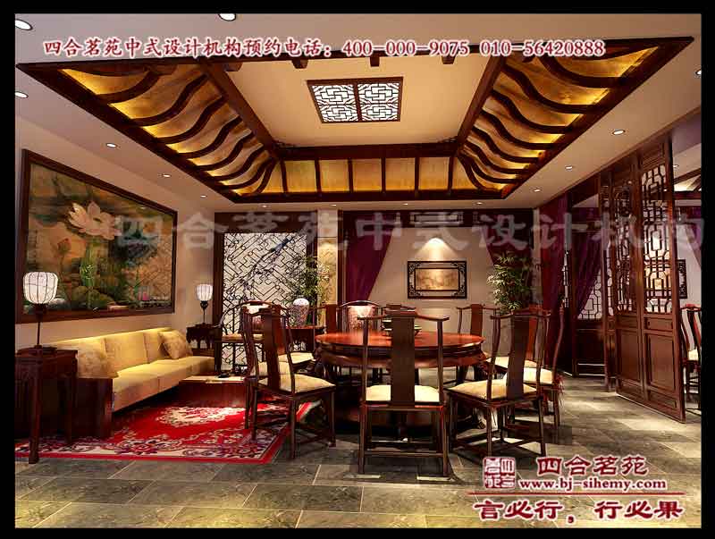 四合茗苑設計師表明,酒店中式設計裝飾中風水魚運用的比較多,業主應該從魚缸的外型、養魚的條數以及魚的品種和色彩著手。